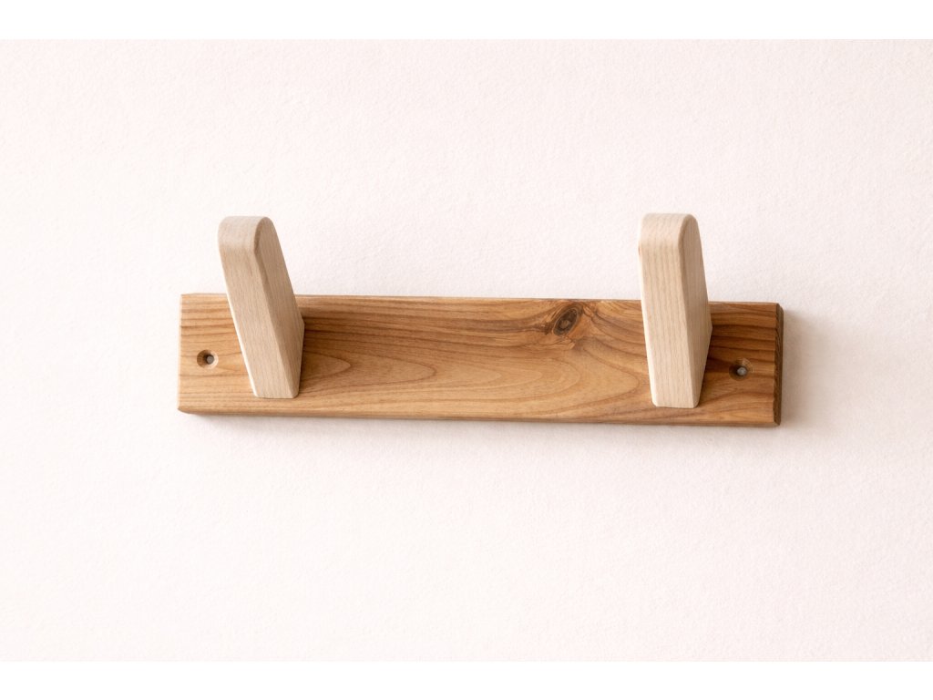 Nástěnný věšáček z jasanového dřeva vyniká jednoduchým tvarem a přirozenou kresbou materiálu.. Dvojice dřevěných háčků nabízí praktický prostor pro každodenní použití. Věšáček se snadno uplatní v předsíni, ložnici i koupelně.
