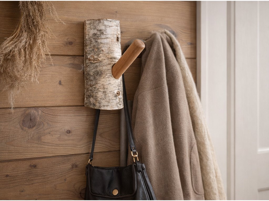 Nástěnný věšák z březového dřeva zaujme surovým, autentickým vzhledem a jednoduchým provedením. Tělo z břízy s přiznanou strukturou doplňuje hladká dřevěná tyč, která slouží jako praktický háček. Každý kus je originál díky přirozené kresbě a nepravidelnostem dřeva. Věšák je funkčním i dekorativním prvkem interiéru.
